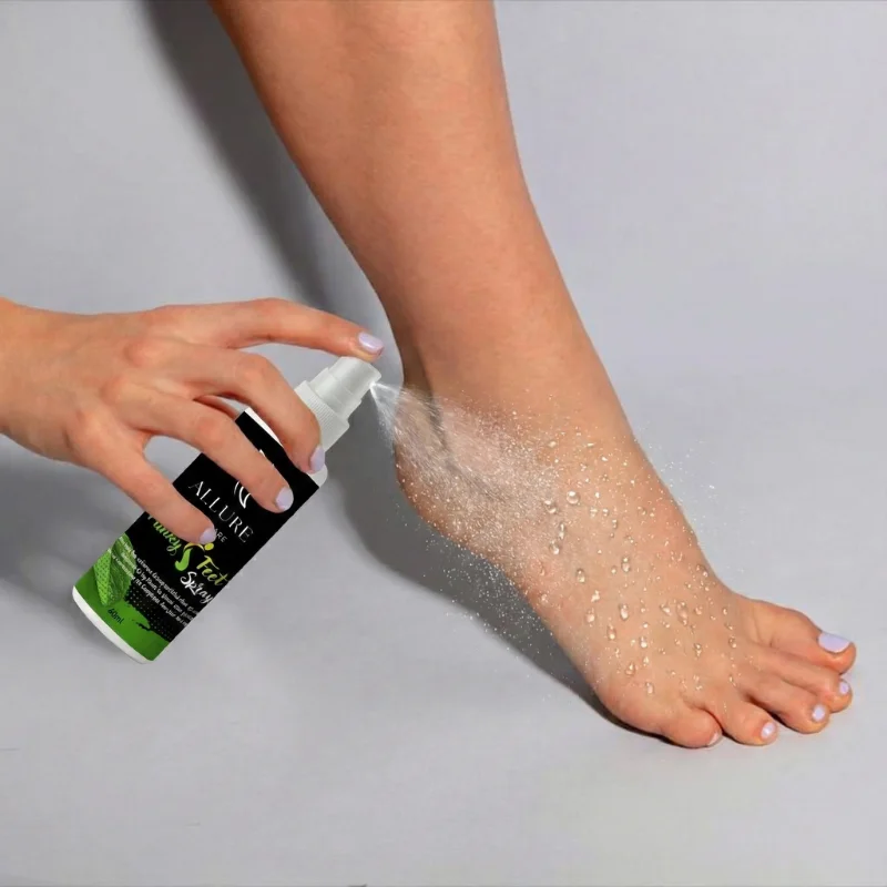 - Vaporisez généreusement sur vos pieds propres et secs.